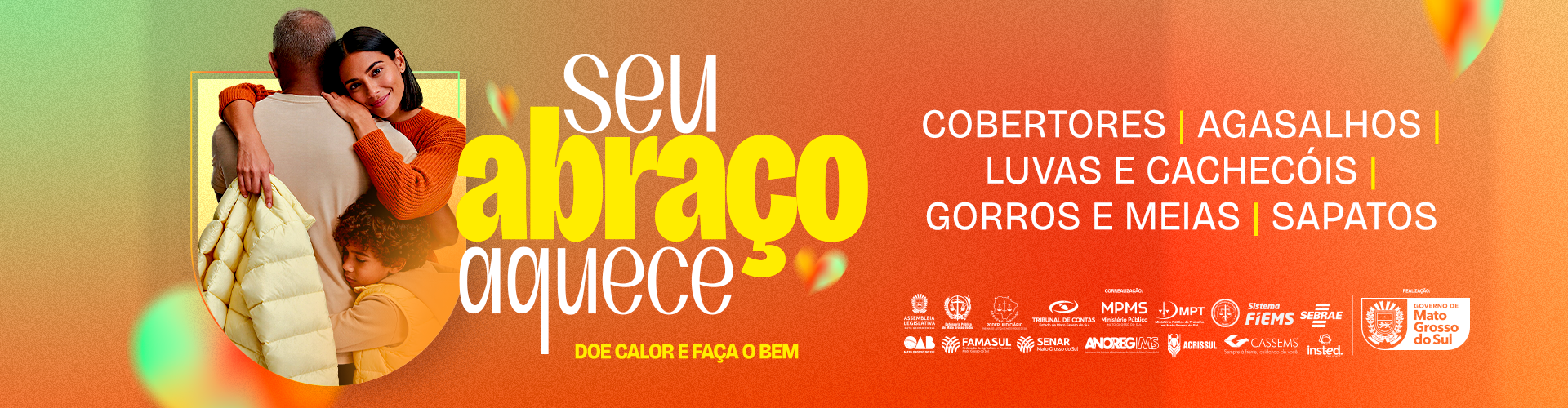 “Seu Abraço Aquece – Doe Calor e Faça o Bem!” é uma campanha solidária dos servidores do Estado de Mato Grosso do Sul, organizada pela SAD e com o apoio da primeira-dama Mônica Riedel. A ação mobiliza servidores e sociedade na arrecadação de roupas e itens de inverno para famílias em situação de vulnerabilidade. Em 2025, a campanha completa 10 anos e se uniu à AMA para o lançamento das ações no dia 6 de abril, promovendo também a conscientização sobre o autismo. As doações começaram com a 3ª Corrida da AMA, com arrecadação de meias nos dias 5 e 6 de abril, e seguem nos órgãos públicos e instituições parceiras de 9 de abril a 20 de maio.